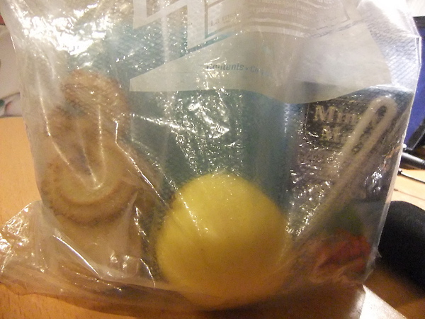 這就是我中餐的餐盒,看起來蠻厲害的,有三明治、水果、飲料及小餅乾(完全大勝多倫多),害我忍不住都拍了一下照片